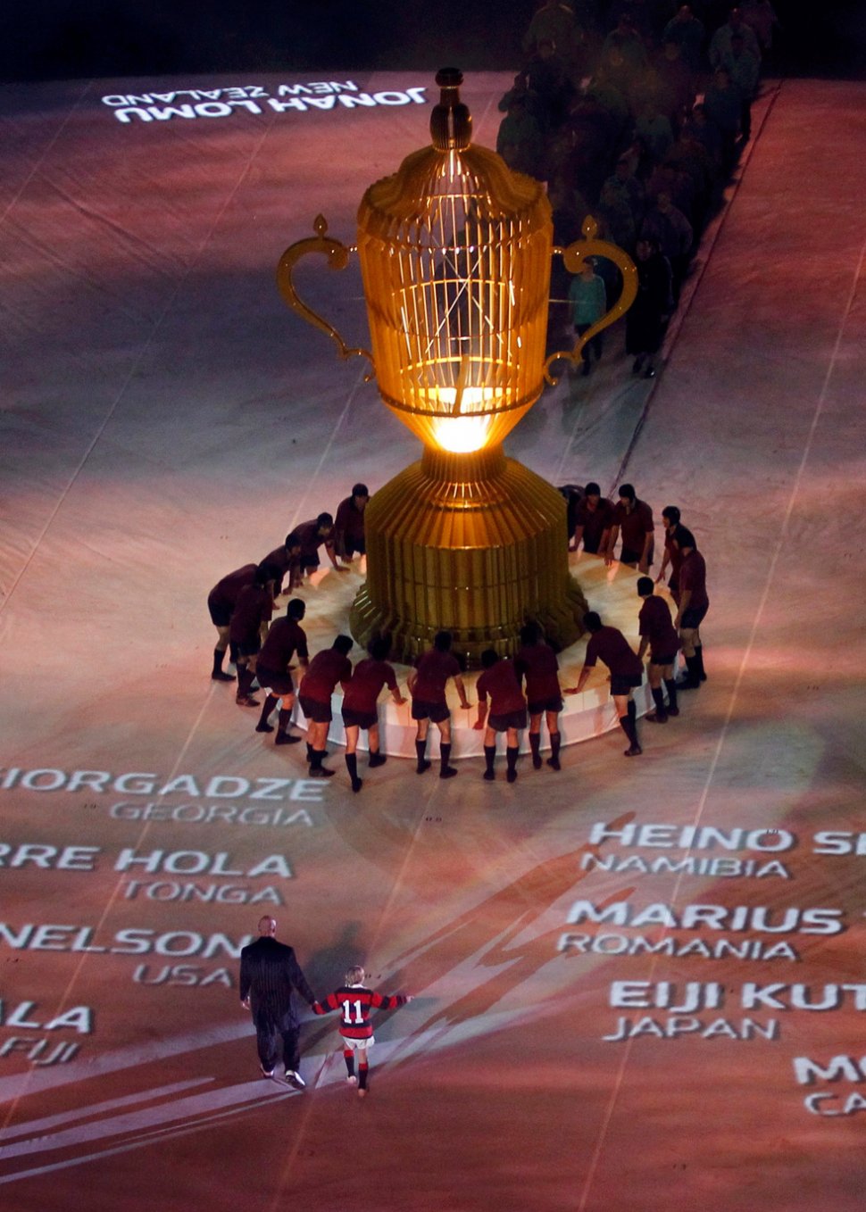 La ceremonia comenzó con una bienvenida tradicional de la cultura maorí y continuó con enérgicos bailarines, cantantes, fuegos artificiales y un espectáculo de luz deslumbrante. El tema de la apertura reflejó un viaje desde todos los rincones de la Tierra hasta llegar a Nueva Zelanda, con los equipos listos para la batalla por el premio final de rugby.