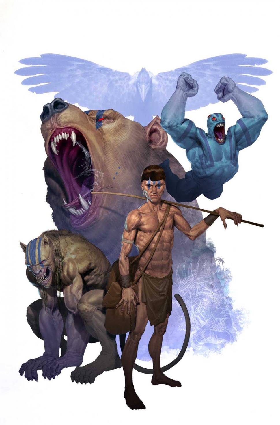Olivetti ilustrando monstruos raros en la selva latinoamericana durante la