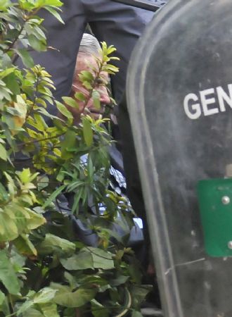 Luciano Benjamín Menéndez sale del edificio judicial.