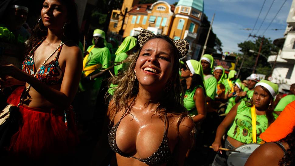Un grupo de baile disfrute de la tradicional fiesta de "Carmelitas", que recorre los barrios de Rio de Janeiro, previo al inicio del carnaval. REUTERS