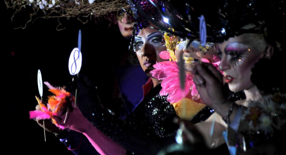 A las 23 se escucharon las primeras risotadas netamente drag queen. Burlonas, sarcásticas, como si las plumas y las pestañas postizas les salieran por la garganta. Contagiosas.