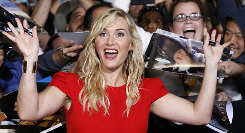 La actriz Kate Winslet sobre su estrella en el Paseo de la Fama en Hollywood, California. REUTERS / Mario Anzuoni