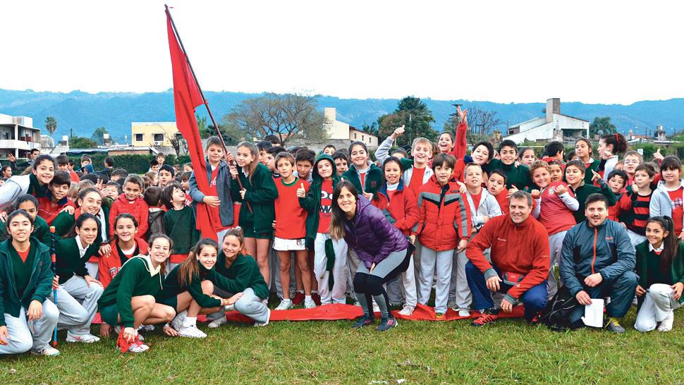 Los chicos, docentes y padres del equipo azul gritaron y vitorearon a los participantes de su equipo en cada