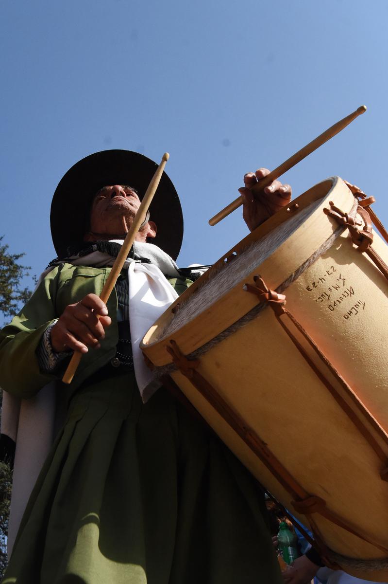 Convocados por la V Marcha de los Bombos, cientos de bombistas y bombistos, músicos y bailarines se concentraron a la mañana en la plaza Independencia. Retumbaron los bombos hasta llegar a la plaza San Martín al mediodía, donde se armó el baile criollo. Al frente marchó El Indio Froilán, referente del instrumento e impulsor del movimiento socio-cultural identitario. La Gaceta / Fotos de Analía Jaramillo.