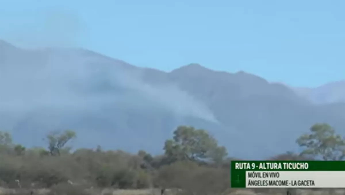 Las columnas de humo se pueden ver desde la tarde del lunes cuando se circula por la ruta 9 y fueron los bomberos de Tapia los que dieron aviso a Defensa Civil, que hizo un relevamiento en los cerros.