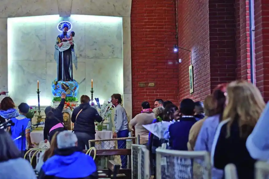 Durante la jornada, el templo ofreció seis misas en diferentes horarios. La central tuvo lugar a la tarde y fue presidida por el arzobispo de Tucumán, monseñor Carlos Sánchez. Entre esas idas y vueltas constantes de feligreses, Nélida Guerrero (45) permanece quieta al costado de la puerta. Con cada recambio, ella aprovecha para regalarles pan a los visitantes.