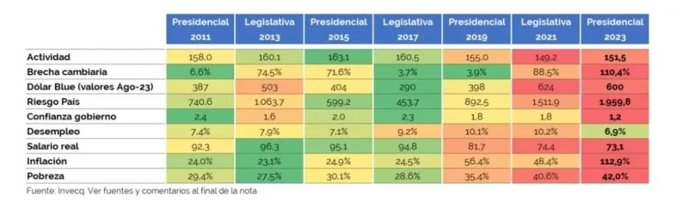 En relación al cuadro social, la situación es muy delicada, plantea Invecq: el nivel de pobreza habría superado el 40% durante el primer trimestre de este año, un claro empeoramiento versus la antesala de todas las elecciones primarias anteriores (a excepción de 2021, en donde el valor era similar pero en un contexto de pandemia y restricciones).