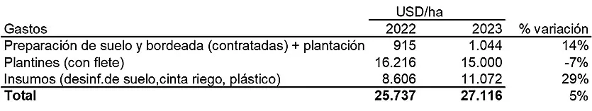 • Los gastos de plantación en 2023, en dólares, aumentaron un 5%, respecto de los de 2022.