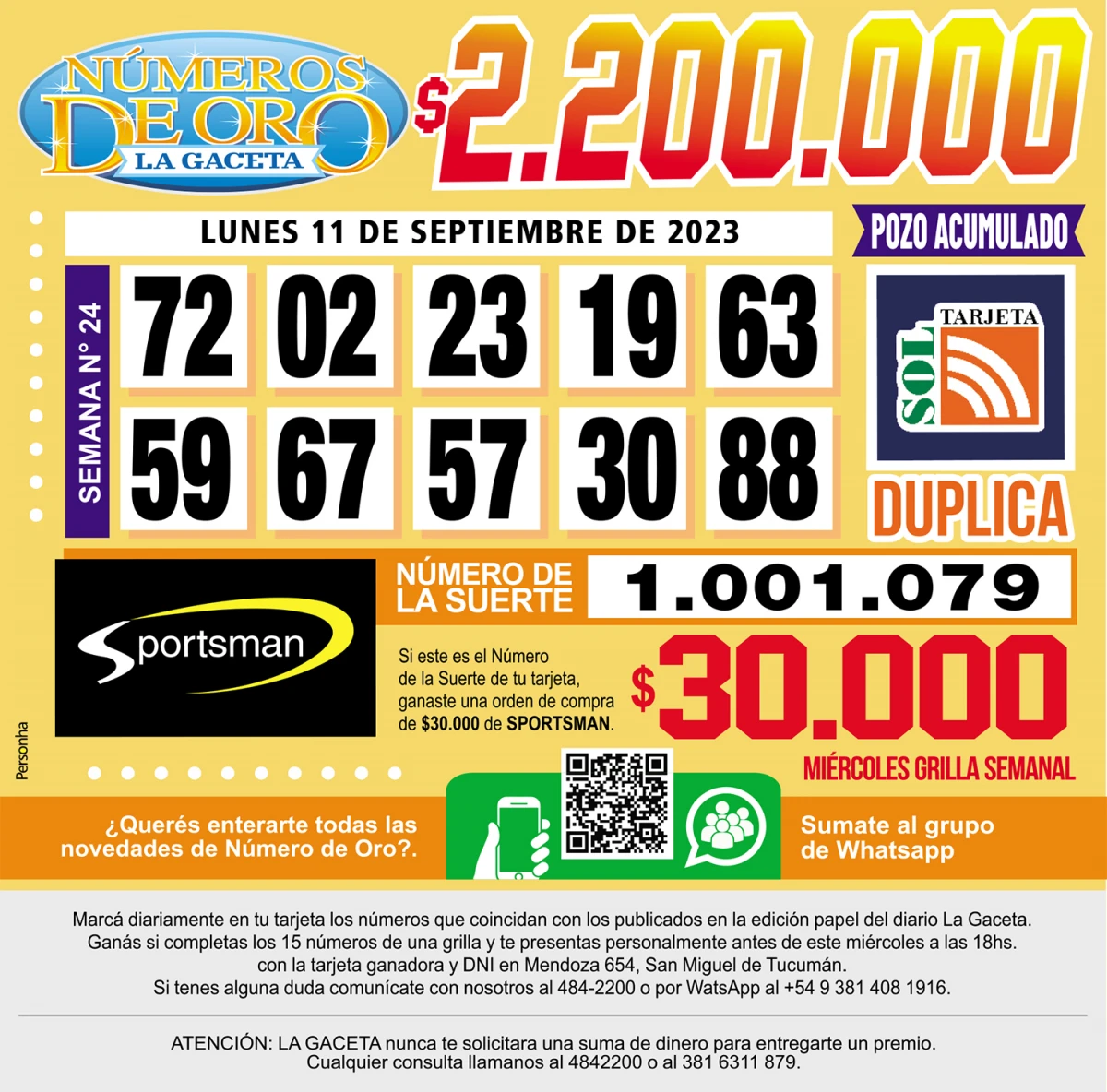 Los Números de Oro de LA GACETA del 11 de septiembre de 2023