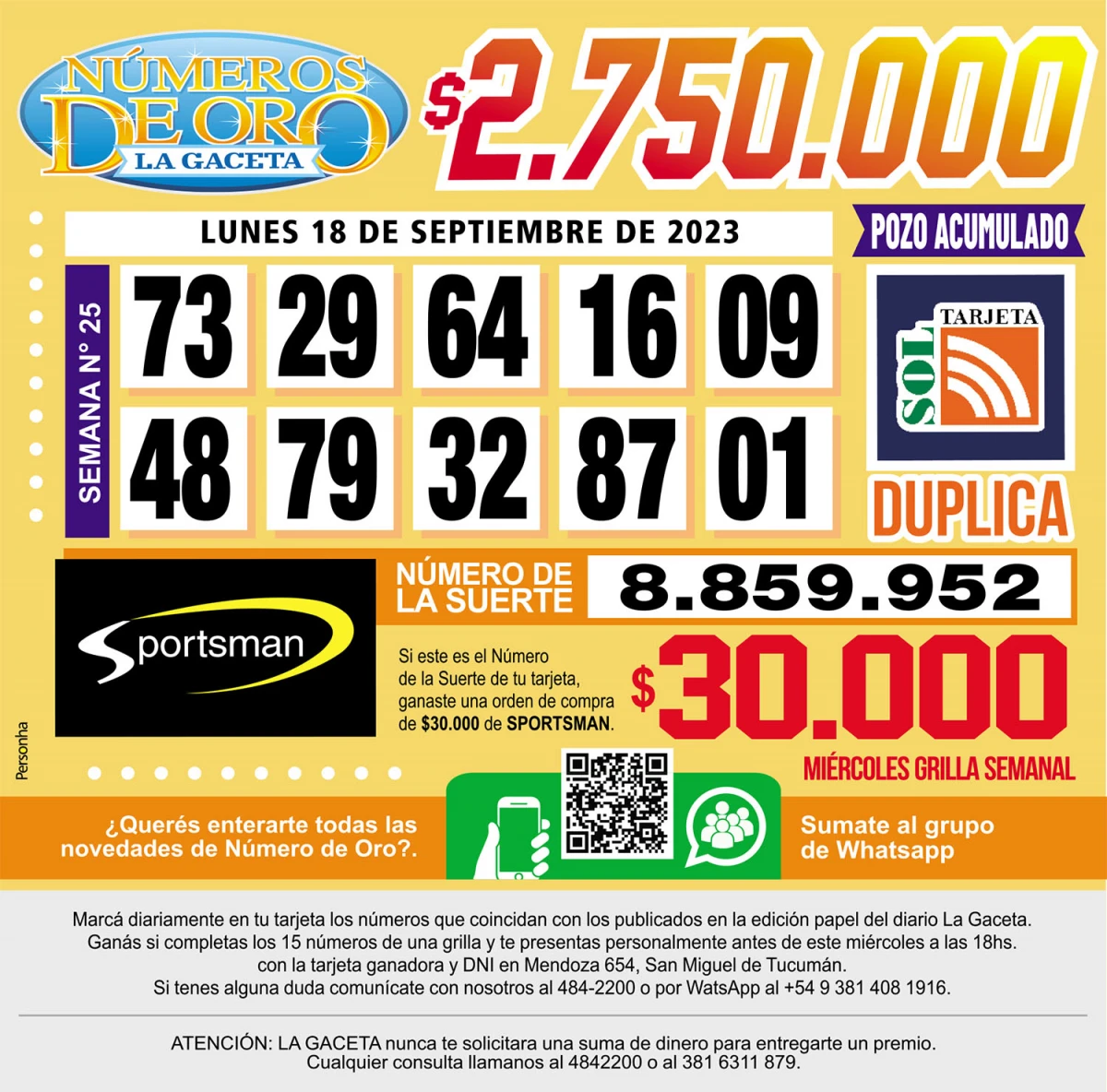 Los Números de Oro de LA GACETA del 18 de septiembre de 2023