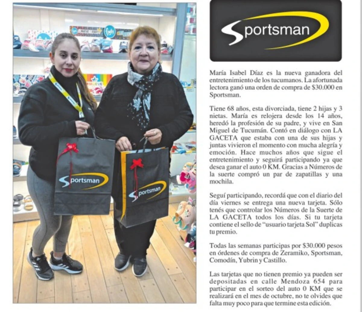 Números de la Suerte: María Isabel Díaz ganó una orden de compra de $30.000 en Sportsman