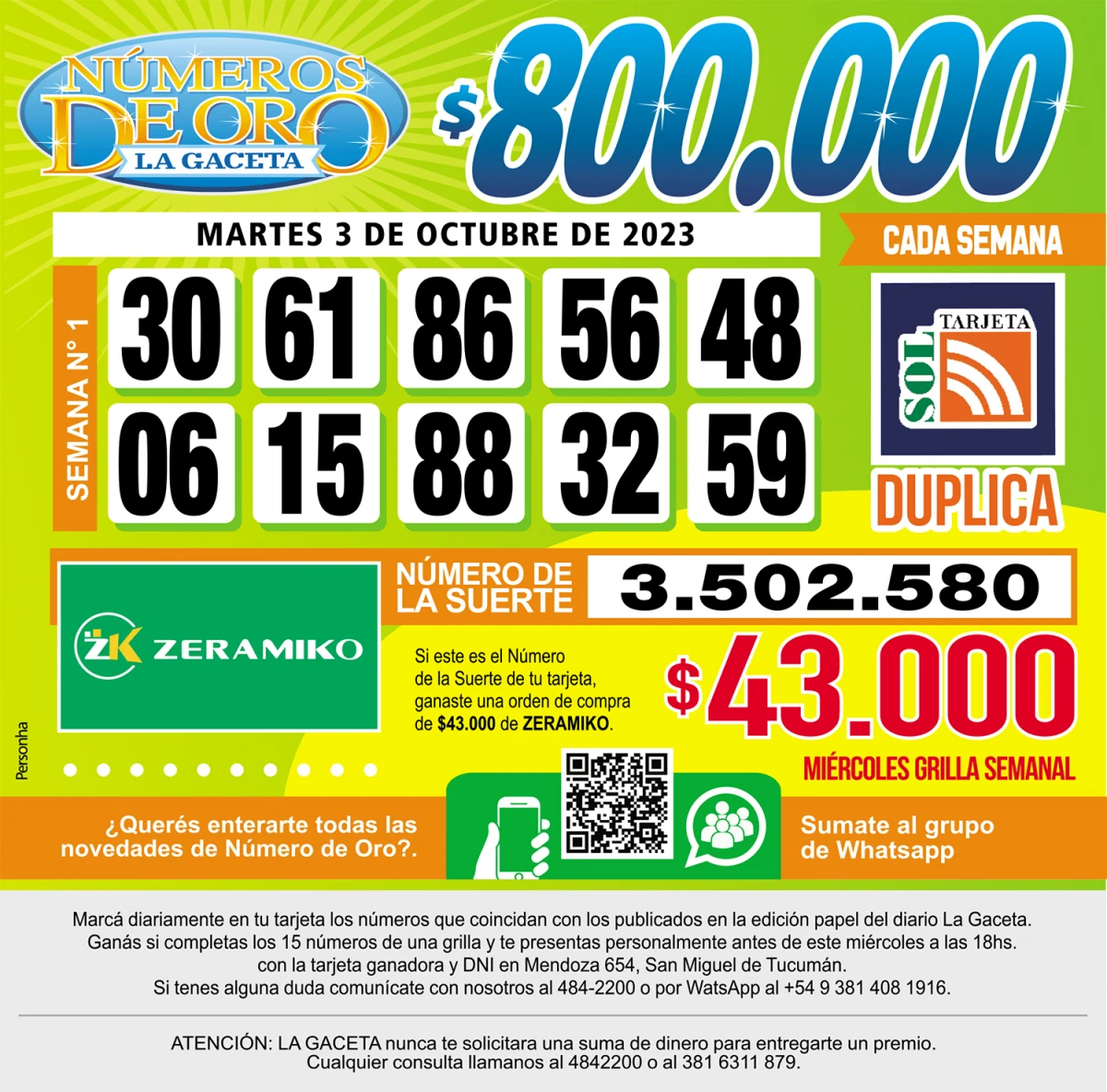 Los Números de Oro de LA GACETA del 3 de octubre de 2023