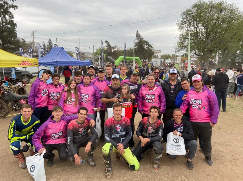 Las remeras, las camperas, las gorras llaman la atención. Son cerca de 30 las personas que visten esta indumentaria, de color rosa, y con un logo más que particular: la cerdita “Peppa”, protagonista de la serie animada “Peppa Pig”, subida a una moto. Esta delegación, que llegó desde Misiones para competir en el Transmontaña de San Pedro, compone el equipo denominado “Pepa Team”.