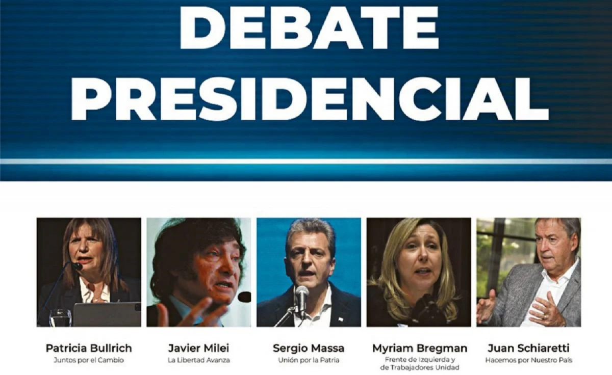 Javier Milei (La Libertad Avanza), Sergio Massa (Unión por la Patria), Patricia Bullrich (Juntos por el Cambio), Juan Schiaretti (Hacemos por Nuestro País) y Myriam Bregman (Frente de Izquierda y Trabajadores-Unidad) son los candidatos.