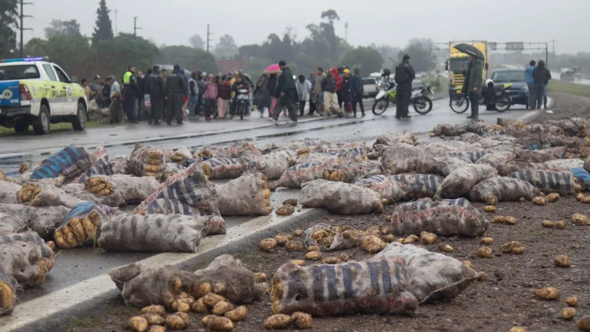 La Policía intentó desalojar la autopista de Circunvalación para evitar un desborde y la sustracción de las bolsas de papa que estaban desparramadas en el asfalto y la banquina.