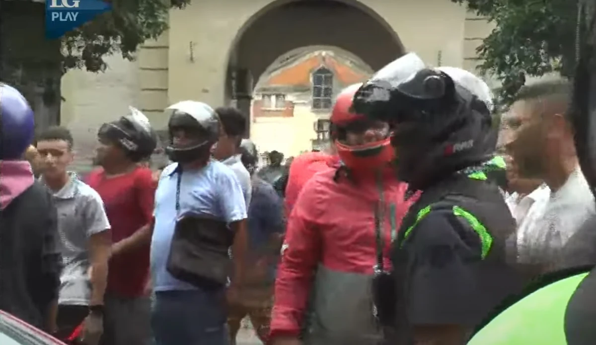 Una decena de policías se presentó en el lugar, como también un grupo de taxistas, lo que provocó la reacción de los peatones y choferes. Todo ello desembocó en un corte de tránsito.