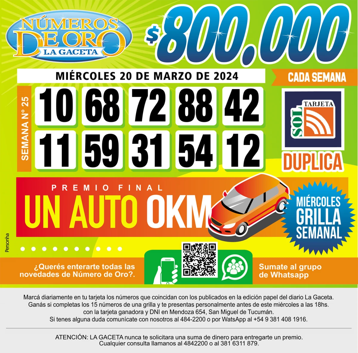 Números de Oro Los Números de Oro de LA GACETA del 20 de marzo de 2024 Compartir Whatsapp Facebook X Copiar dirección URL 20 Marzo 2024 Seguir en Esta nota es de acceso libre. Temas WhatsApp Tamaño texto Comentarios Lo más popular UTA Tucumán confirma un paro de colectivos contra la reforma laboral en la previa a la cita en Diputados Proponen transformar El Bajo en una especie de mini Puerto Madero Importaciones de cubiertas chinas: Fate anunció su cierre definitivo y el despido de 920 trabajadores Ataque en Tafí del Valle: una espera que despierta sospechas Cierra Fate y más de 900 trabajadores quedan afectados: “De esenciales pasamos a ser descartables” Aguiar, referente de ATE: “Por mecanismos constitucionales, este Gobierno debería terminar hoy”