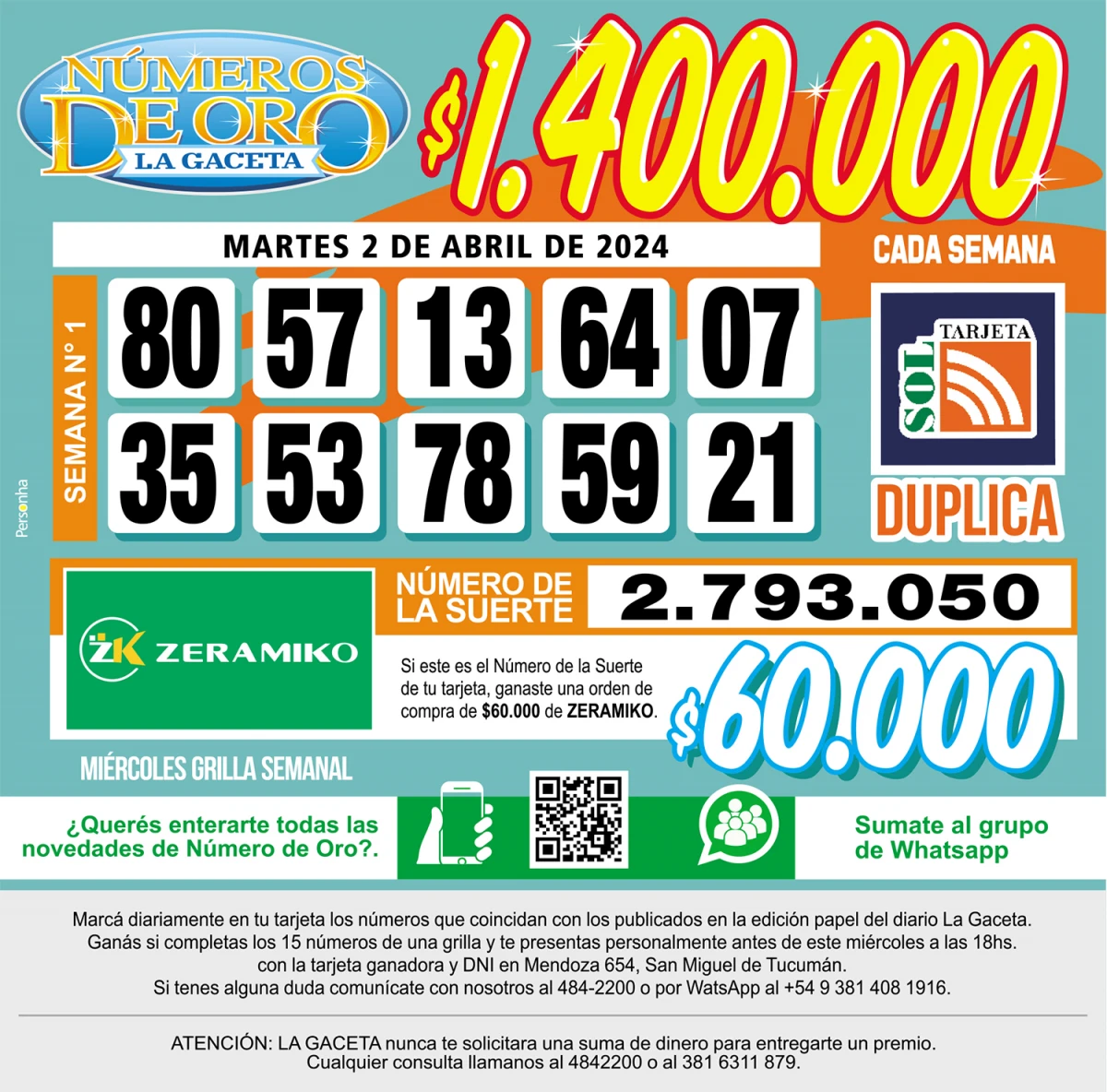 Los Números de Oro de LA GACETA del 2 de abril de 2024