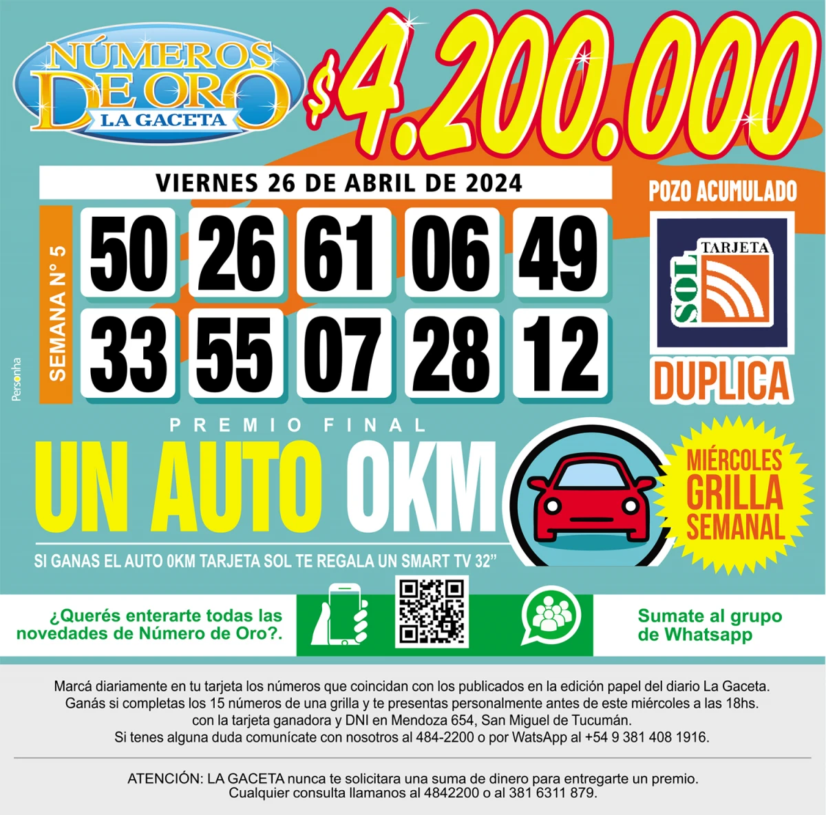 Números de Oro Los Números de Oro de LA GACETA del 26 de abril de 2024 Compartir Whatsapp Facebook X Copiar dirección URL 26 Abril 2024 Seguir en Esta nota es de acceso libre. Temas FacebookWhatsAppAbuso sexual Tamaño texto Comentarios Lo más popular UTA Tucumán confirma un paro de colectivos contra la reforma laboral en la previa a la cita en Diputados Proponen transformar El Bajo en una especie de mini Puerto Madero Importaciones de cubiertas chinas: Fate anunció su cierre definitivo y el despido de 920 trabajadores Ataque en Tafí del Valle: una espera que despierta sospechas Aguiar, referente de ATE: “Por mecanismos constitucionales, este Gobierno debería terminar hoy” Cierra Fate y más de 900 trabajadores quedan afectados: “De esenciales pasamos a ser descartables”