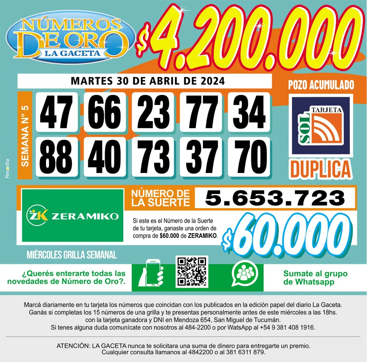 Números de Oro Los Números de Oro de LA GACETA del 30 de abril de 2024 Compartir Whatsapp Facebook X Copiar dirección URL 30 Abril 2024 Seguir en Esta nota es de acceso libre. Temas Paula Omodeo Tamaño texto Comentarios Lo más popular UTA Tucumán confirma un paro de colectivos contra la reforma laboral en la previa a la cita en Diputados Proponen transformar El Bajo en una especie de mini Puerto Madero Importaciones de cubiertas chinas: Fate anunció su cierre definitivo y el despido de 920 trabajadores Ataque en Tafí del Valle: una espera que despierta sospechas Aguiar, referente de ATE: “Por mecanismos constitucionales, este Gobierno debería terminar hoy” Cierra Fate y más de 900 trabajadores quedan afectados: “De esenciales pasamos a ser descartables”
