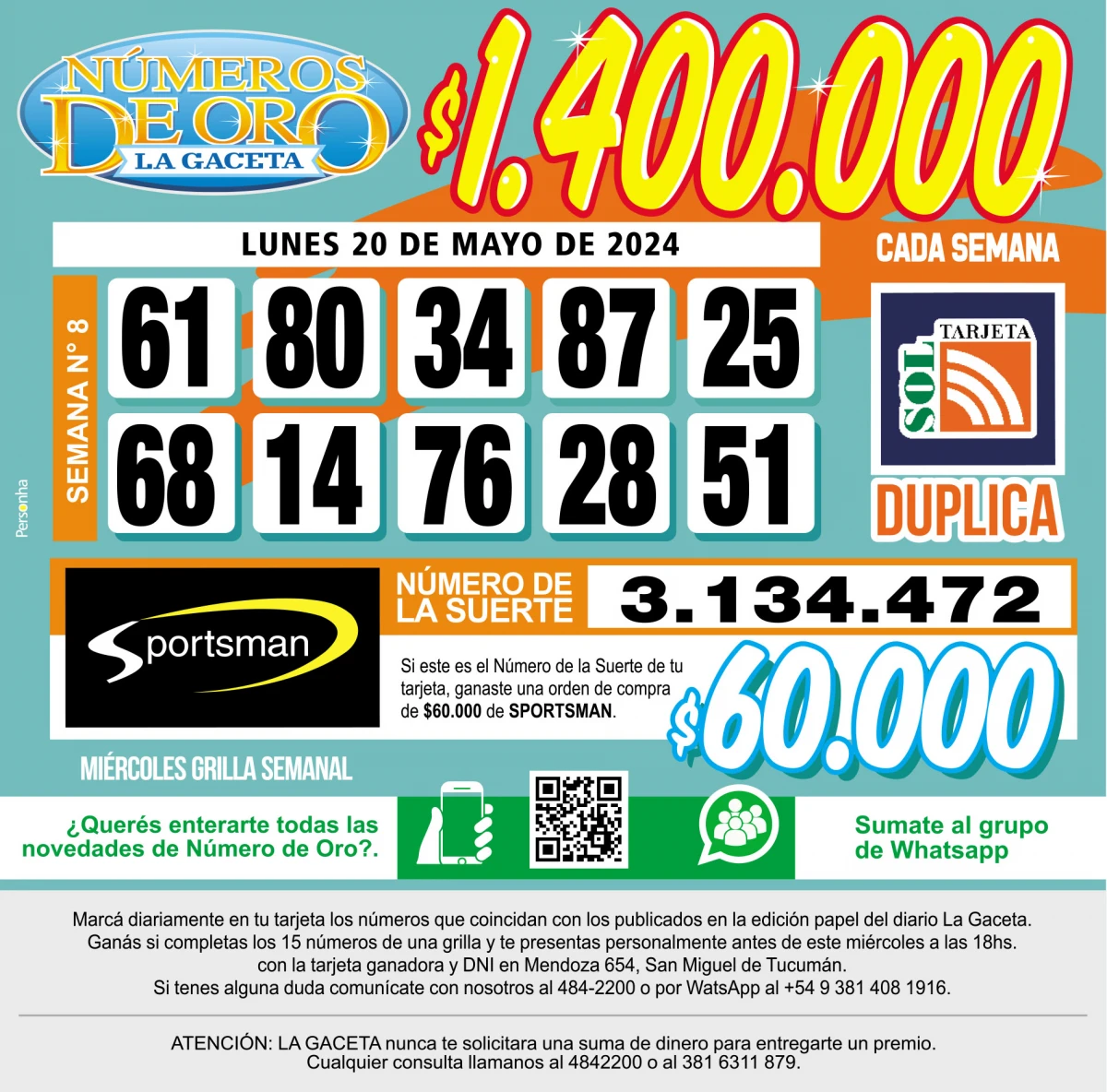 Números de Oro Los Números de Oro de LA GACETA del 20 de mayo de 2024 Compartir Whatsapp Facebook X Copiar dirección URL 20 Mayo 2024 Seguir en Esta nota es de acceso libre. Temas EspañaWhatsAppAntártida Tamaño texto Comentarios Lo más popular UTA Tucumán confirma un paro de colectivos contra la reforma laboral en la previa a la cita en Diputados Proponen transformar El Bajo en una especie de mini Puerto Madero Importaciones de cubiertas chinas: Fate anunció su cierre definitivo y el despido de 920 trabajadores Ataque en Tafí del Valle: una espera que despierta sospechas La lista de nombres que Santiago Bagne aportó para profundizar la pesquisa Ataque en Tafí del Valle: la violencia arruinó el plan de vacaciones