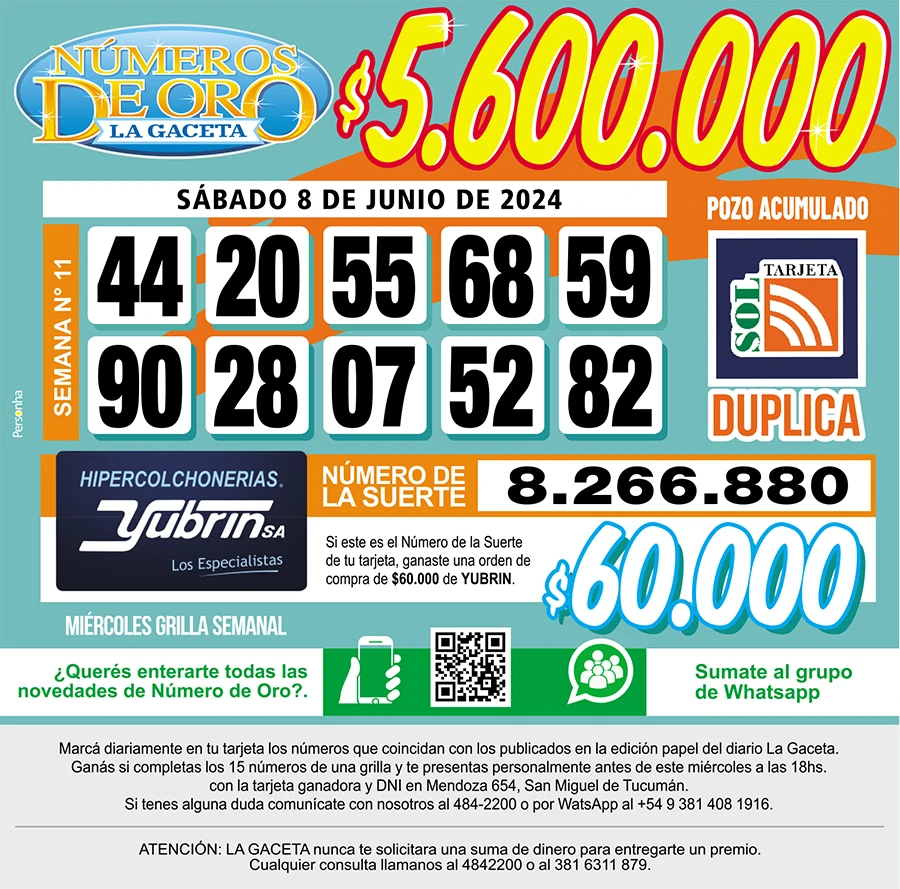 Números de Oro Los Números de Oro de LA GACETA del 8 de junio de 2024 Compartir Whatsapp Facebook X Copiar dirección URL 08 Junio 2024 Seguir en Esta nota es de acceso libre. Temas WhatsAppInteligencia Artificial Tamaño texto Comentarios Lo más popular Proponen transformar El Bajo en una especie de mini Puerto Madero Ataque en Tafí del Valle: una espera que despierta sospechas UTA Tucumán confirma un paro de colectivos contra la reforma laboral en la previa a la cita en Diputados Importaciones de cubiertas chinas: Fate anunció su cierre definitivo y el despido de 920 trabajadores La lista de nombres que Santiago Bagne aportó para profundizar la pesquisa Ataque en Tafí del Valle: la violencia arruinó el plan de vacaciones