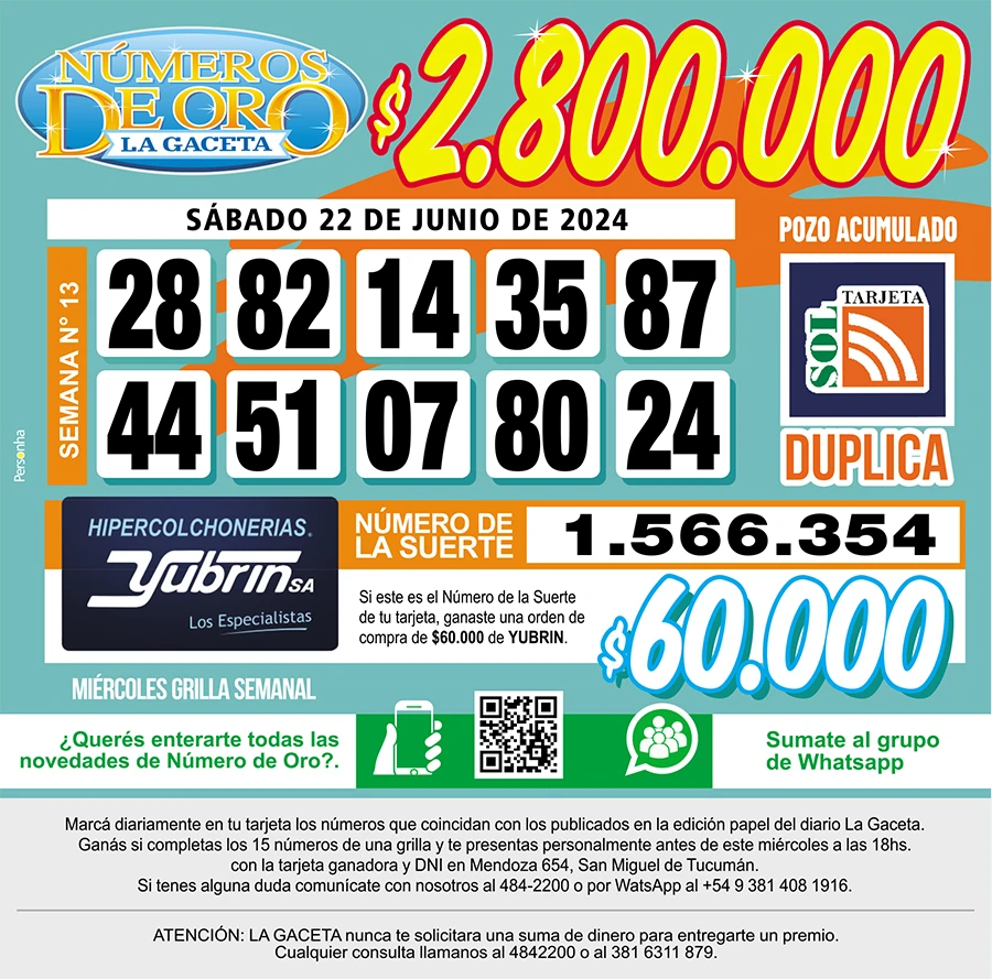 Los Números de Oro de LA GACETA del 22 de junio de 2024