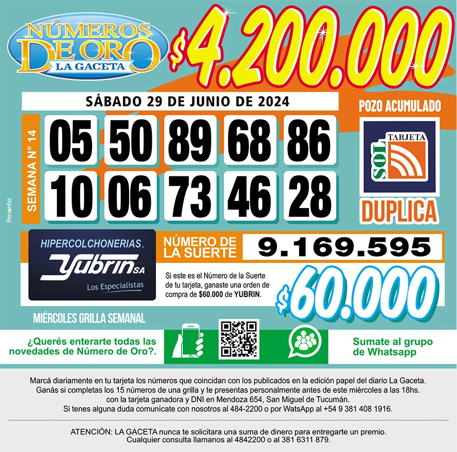 Los Números de Oro de LA GACETA del 29 de junio de 2024