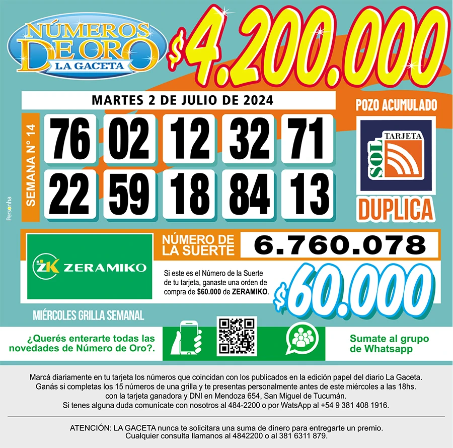 Los Números de Oro de LA GACETA del 2 de julio de 2024
