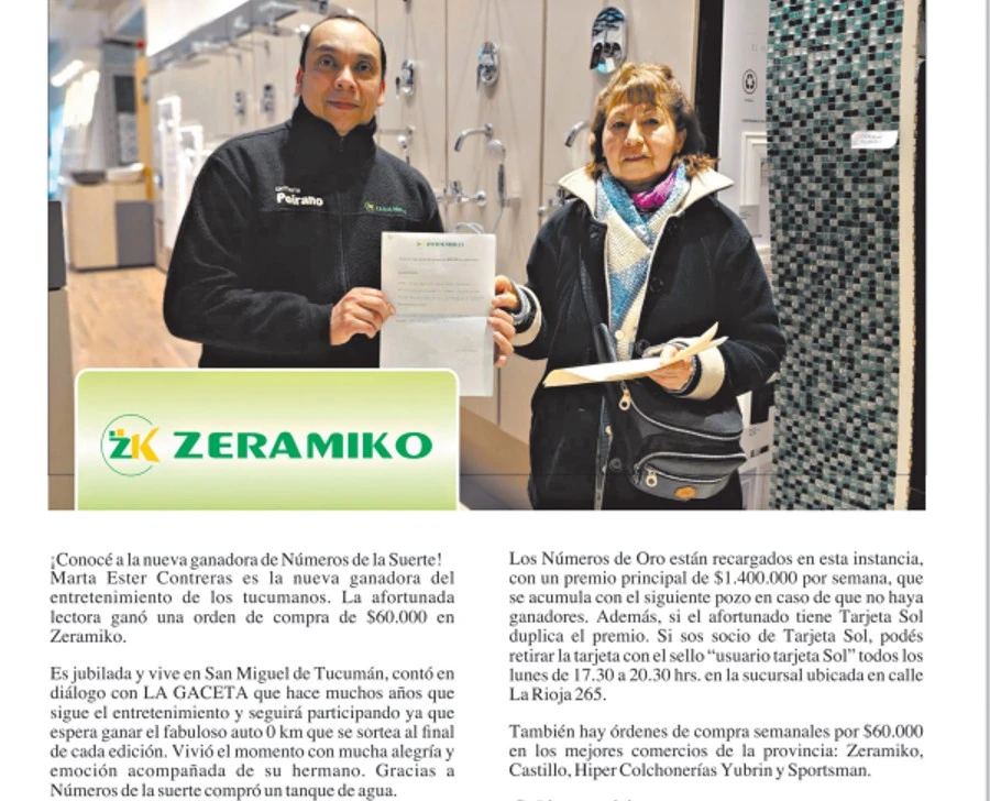 Números de la Suerte: Marta Ester Contreras ganó una orden de compra de $60.000 en Zerámiko