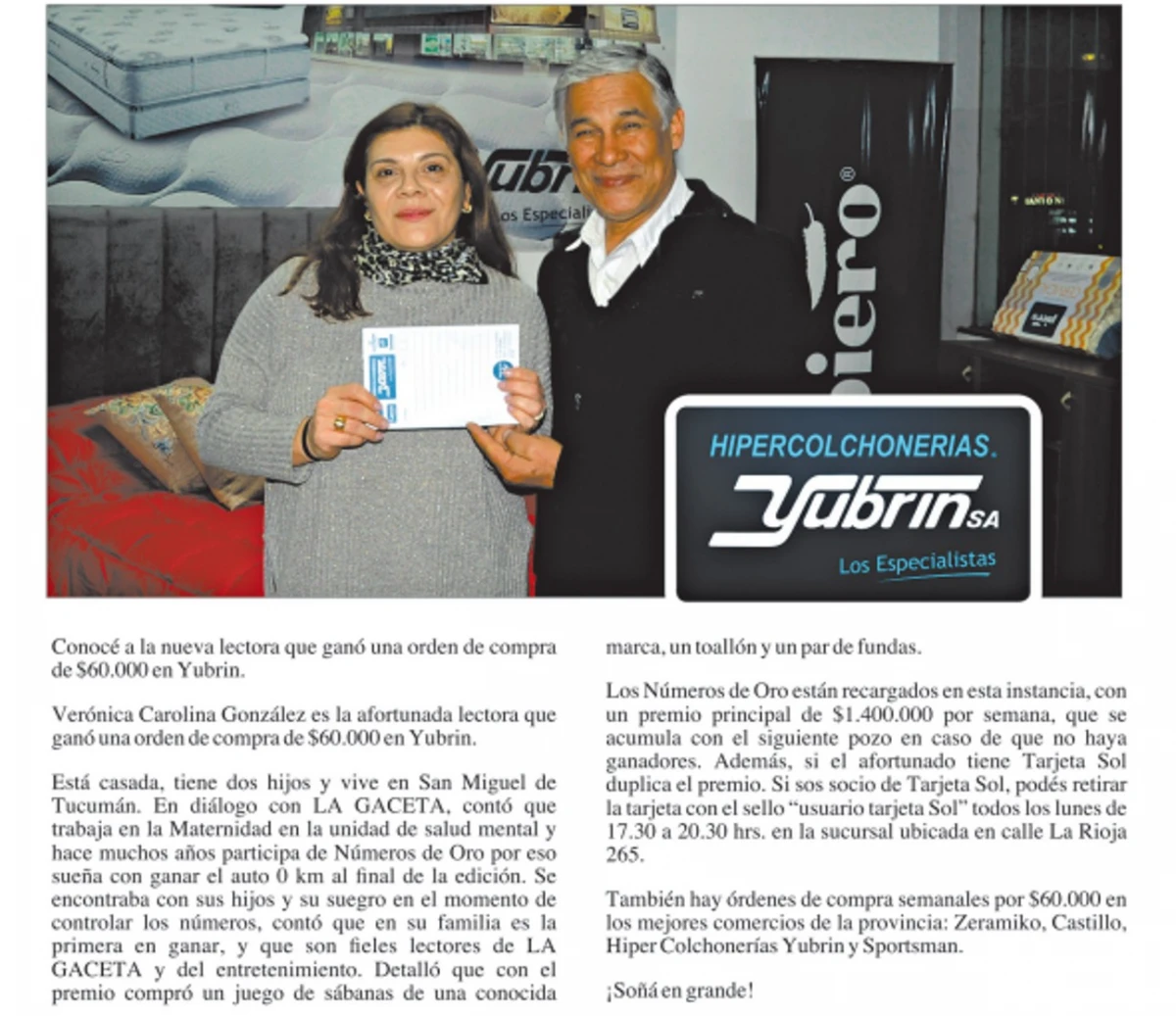 Números de la Suerte: Verónica Carolina González ganó una orden de compra de $60.000 en Yubrin