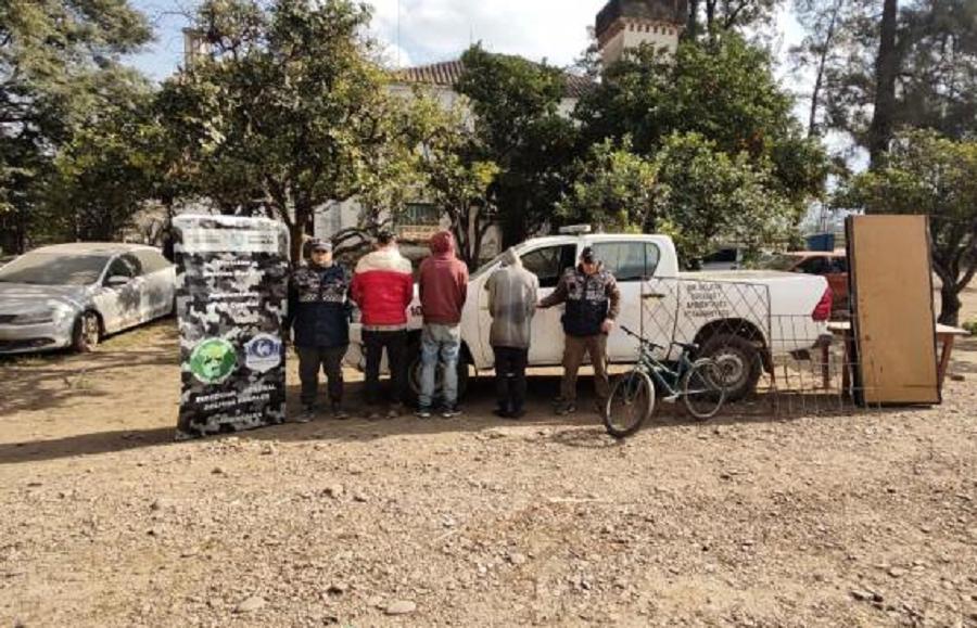 Ante esta situación, efectivos de la División Delitos Rurales y Ambientales n° 6 Capital llevó a cabo diversas averiguaciones por la zona, logrando divisar en horas de la mañana a tres hombres que trasladaban por avenida Francisco de Aguirre y calle Castelli, dos rejas de hierro, una puerta de madera y una bicicleta, pertenecientes a la víctima.