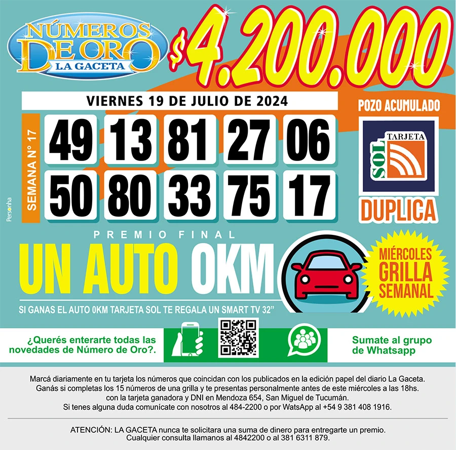 Los Números de Oro de LA GACETA del 19 de julio de 2024