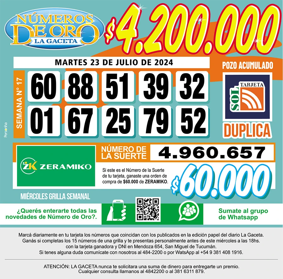 Los Números de Oro de LA GACETA del 23 de julio de 2024