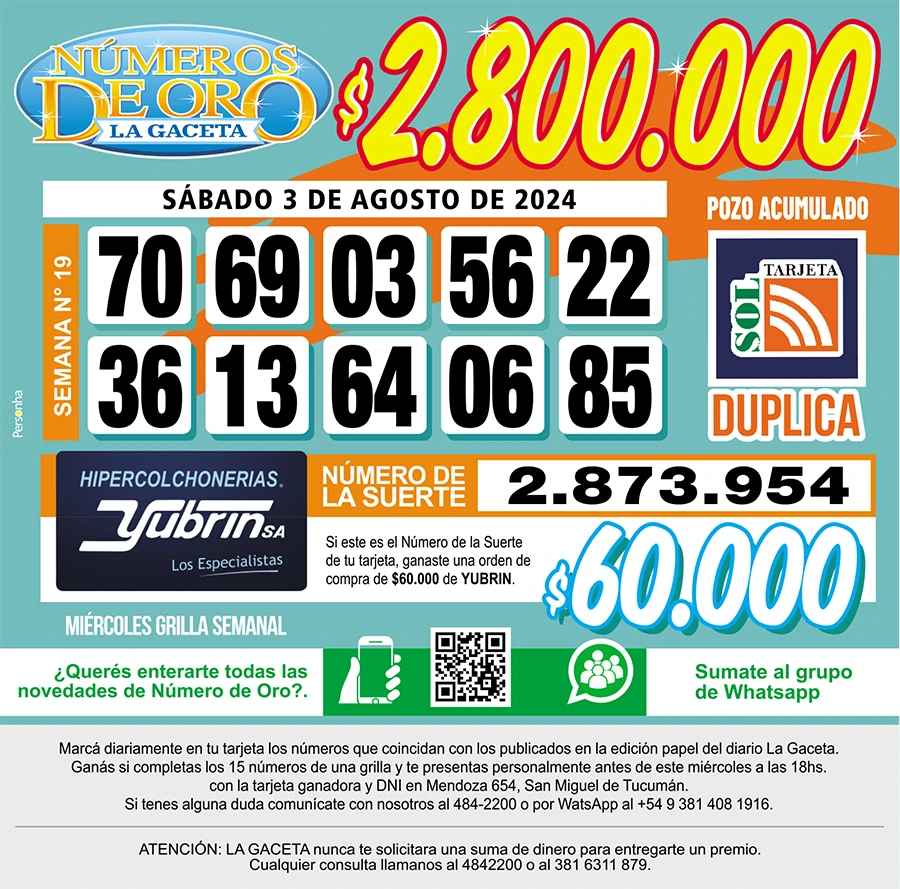 Los Números de Oro de LA GACETA del 3 de agosto de 2024