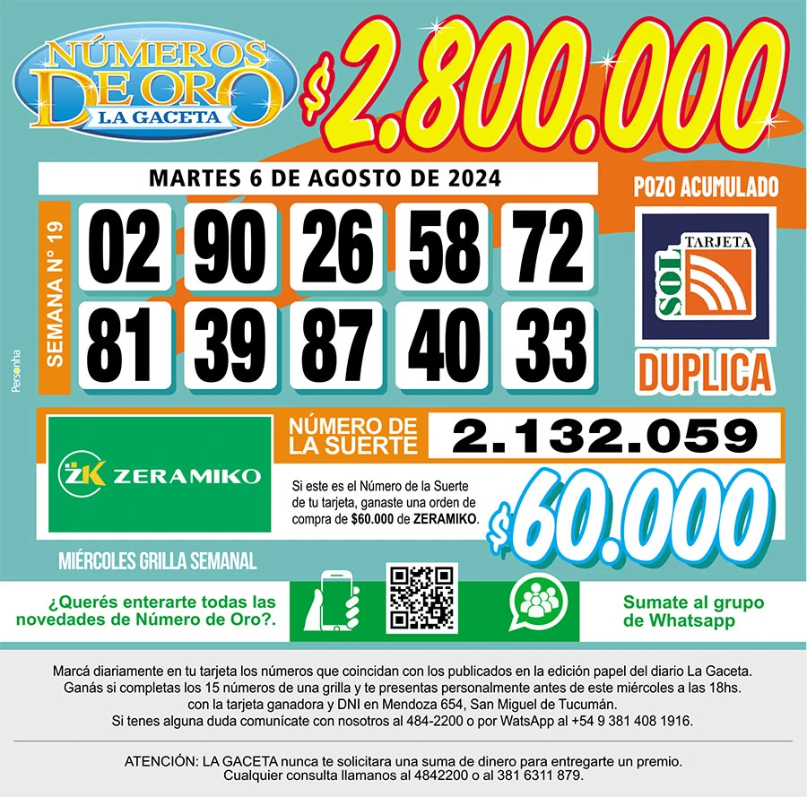 Los Números de Oro de LA GACETA del 6 de agosto de 2024