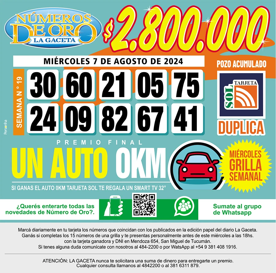 Los Números de Oro de LA GACETA del 7 de agosto de 2024