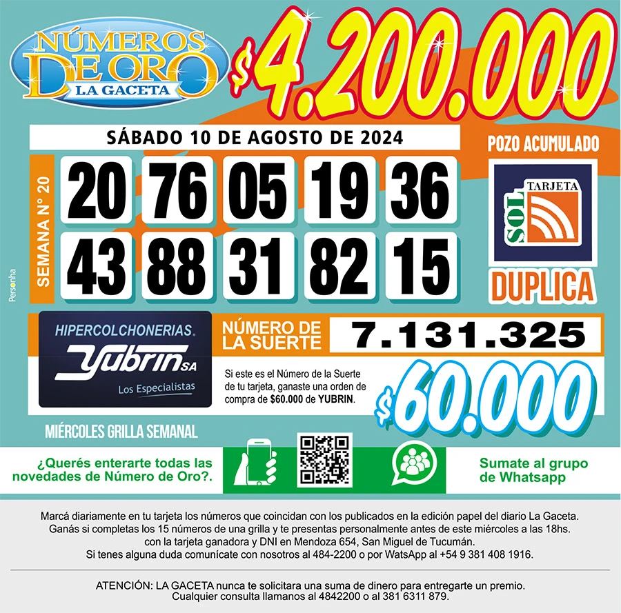 Los Números de Oro de LA GACETA del 10 de agosto de 2024