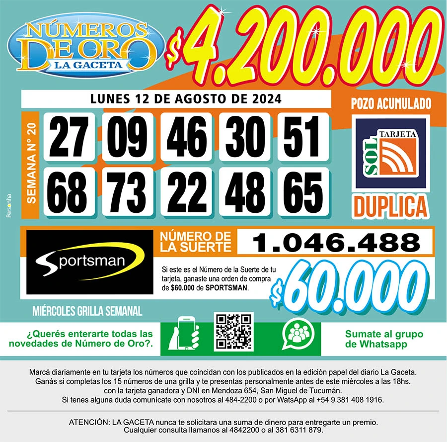 Los Números de Oro de LA GACETA del 12 de agosto de 2024