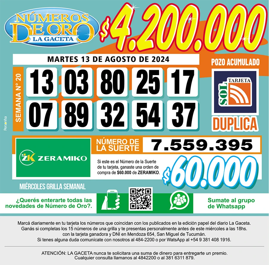 Los Números de Oro de LA GACETA del 13 de agosto de 2024