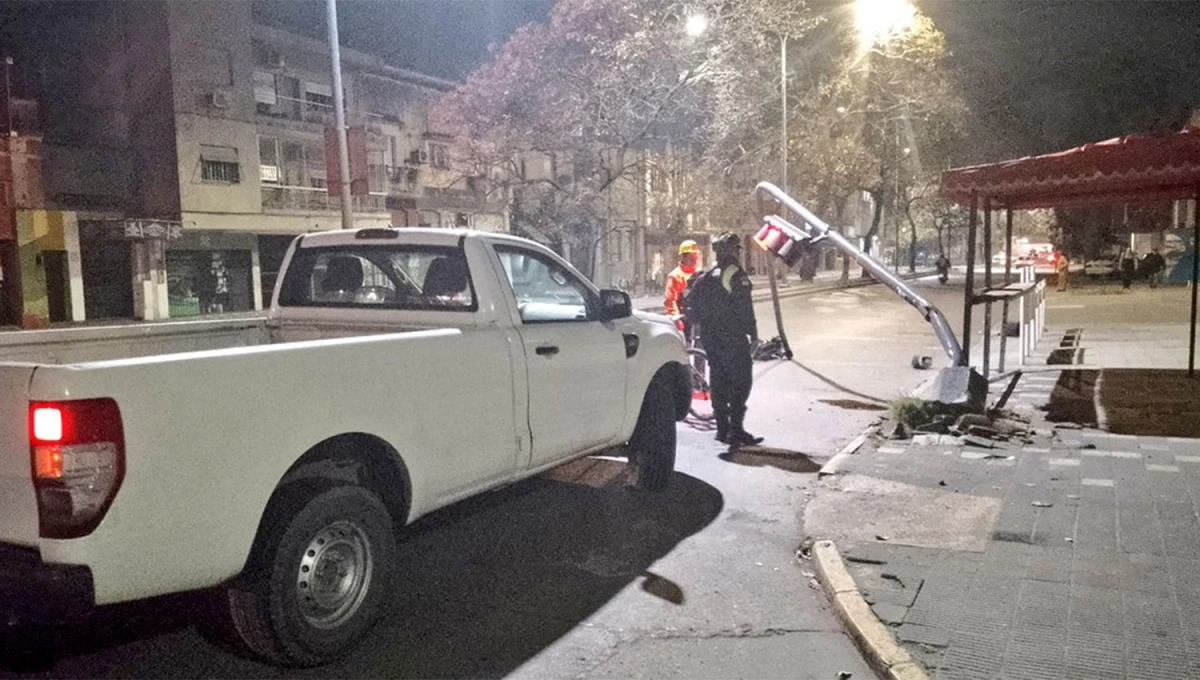 Por causas que se desconocen, el conductor perdió el control del rodado e impactó con violencia contra el semáforo, que segundos después cayó contra el pavimento, sobre Sarmiento.