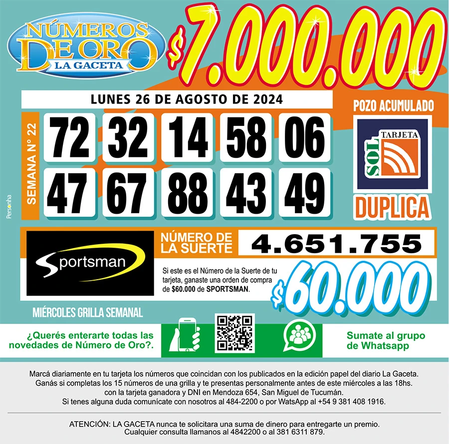 Los Números de Oro de LA GACETA del 26 de agosto de 2024