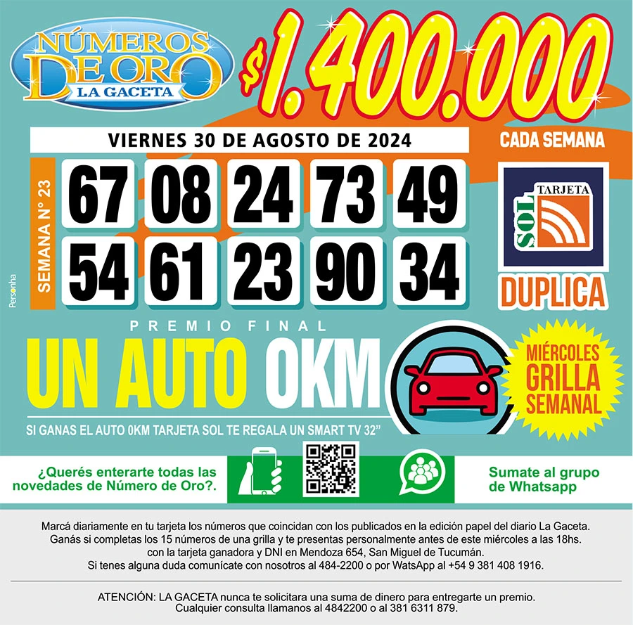 Los Números de Oro de LA GACETA del 30 de agosto de 2024