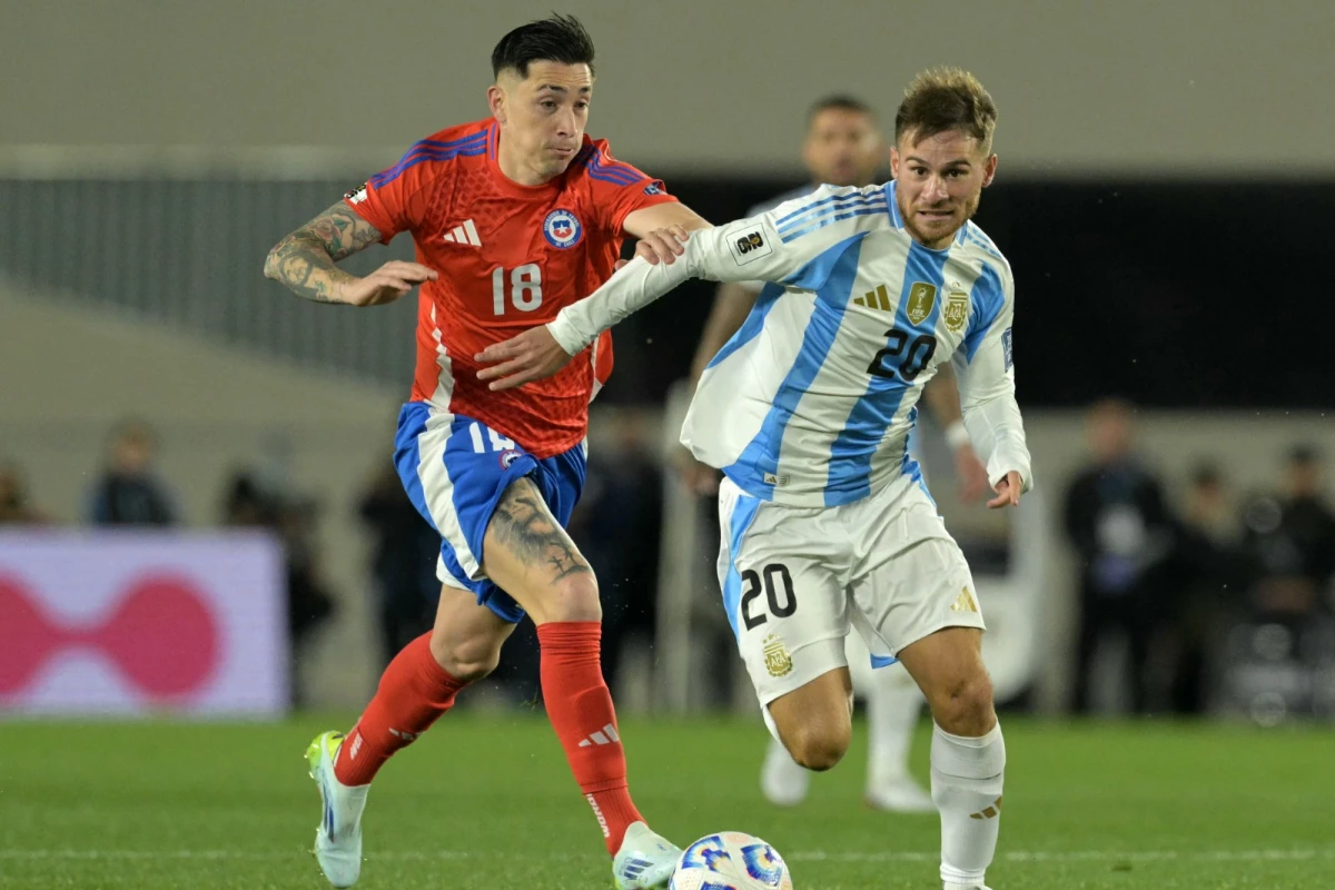 El entrenador planteó un 4-3-3, con Nicolás González acompañando a los dos “9”, Lautaro Martínez y Julián Álvarez, en el ataque. Con esa decisión, Scaloni comenzó a ganarle en la pizarra al experimentado Ricardo Gareca. Y en el primer gol hubo participación de los dos centrodelanteros, en una gran jugada colectiva. Julián, luego de recibir un pase de Rodrigo De Paul, metió un preciso pase-centro para el “Toro” Martínez, que abrió sus piernas y la dejó pasar para Alexis Mac Allister. El jugador surgido en Argentinos Juniors definió perfecto para mandar la pelota al fondo de la red. Golazo y 1 a 0 en el inicio del segundo tiempo.