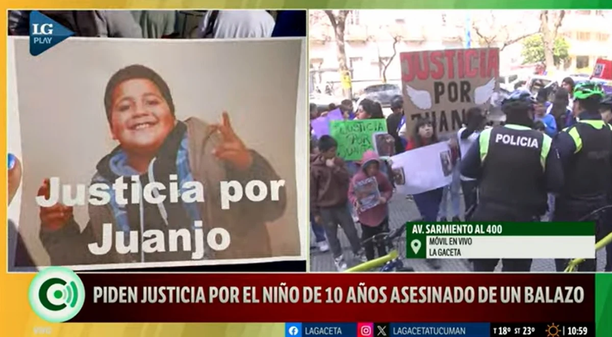 Una protesta se llevó a cabo esta mañana frente a los tribunales de avenida Sarmiento, donde familiares, vecinos y amigos exigieron justicia por la trágica muerte de un niño de 10 años. El pequeño fue asesinado el pasado 2 de septiembre en el barrio 130 Viviendas, cuando, según la investigación, recibió un balazo en la cabeza disparado por un joven de 19 años, identificado como José Matías Gabriel "El Ojoroso" Barrionuevo.