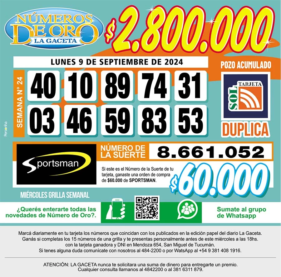 Los Números de Oro de LA GACETA del 9 de septiembre de 2024