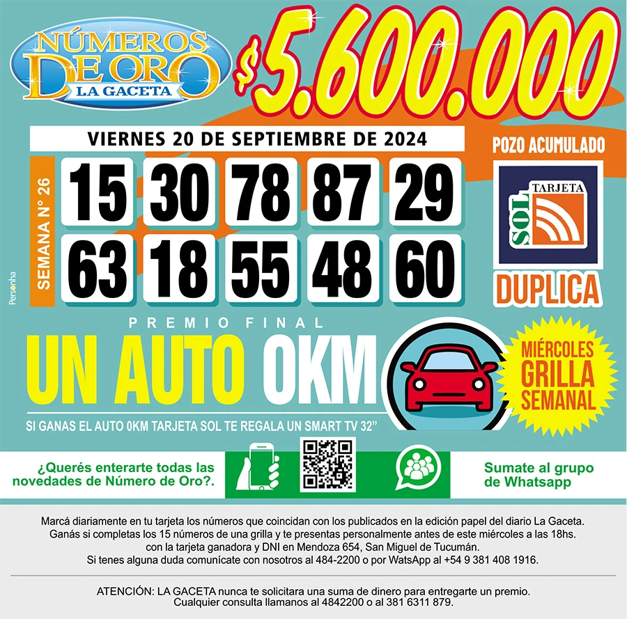 Los Números de Oro de LA GACETA del 20 de septiembre de 2024