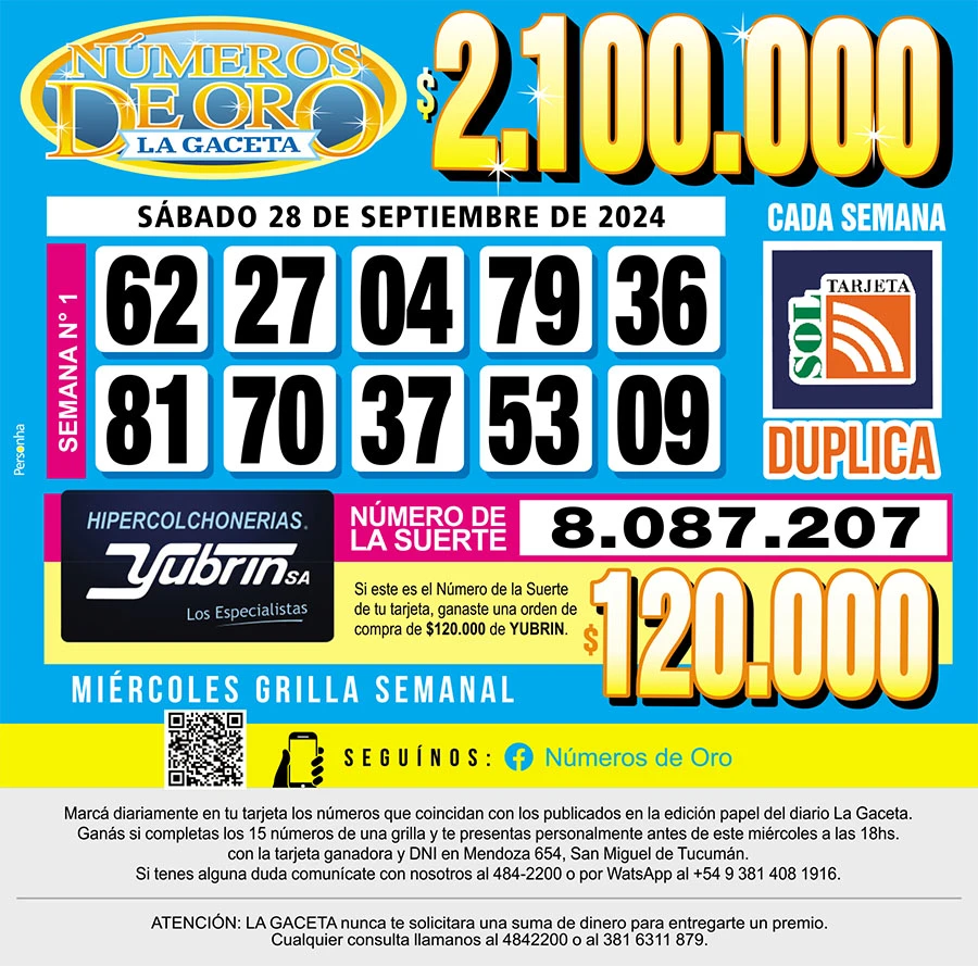Los Números de Oro de LA GACETA del 28 de septiembre de 2024
