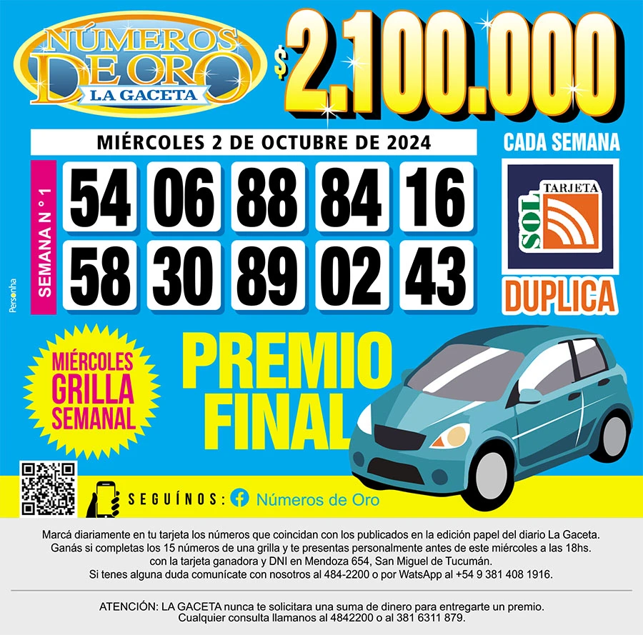 Los Números de Oro de LA GACETA del 2 de octubre de 2024