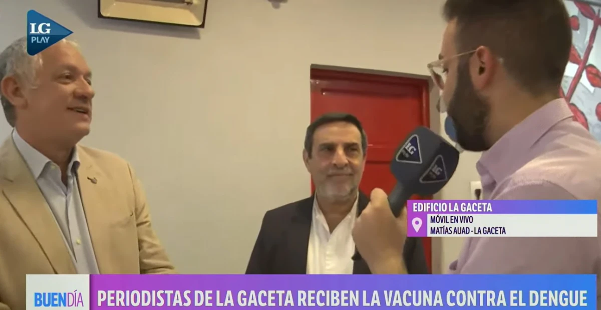 En el marco de la campaña de vacunación contra el dengue en Tucumán, el ministro de Salud, Luis Medina Ruiz, participó en la jornada de inmunización realizada en las instalaciones de LA GACETA, donde los periodistas del medio recibieron sus dosis. Durante una charla con Buen Día, informativo de LG Play, el funcionario remarcó la relevancia de esta medida, especialmente para aquellos que cumplen funciones esenciales.